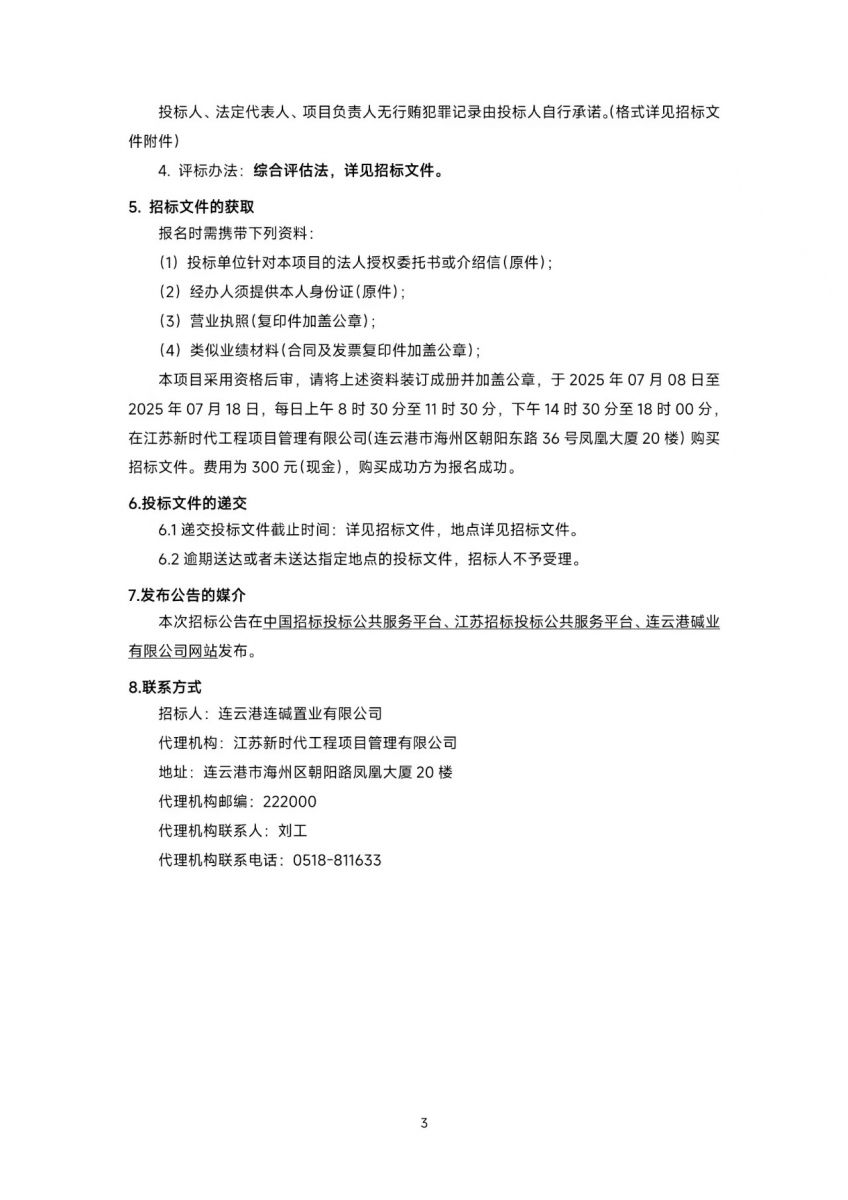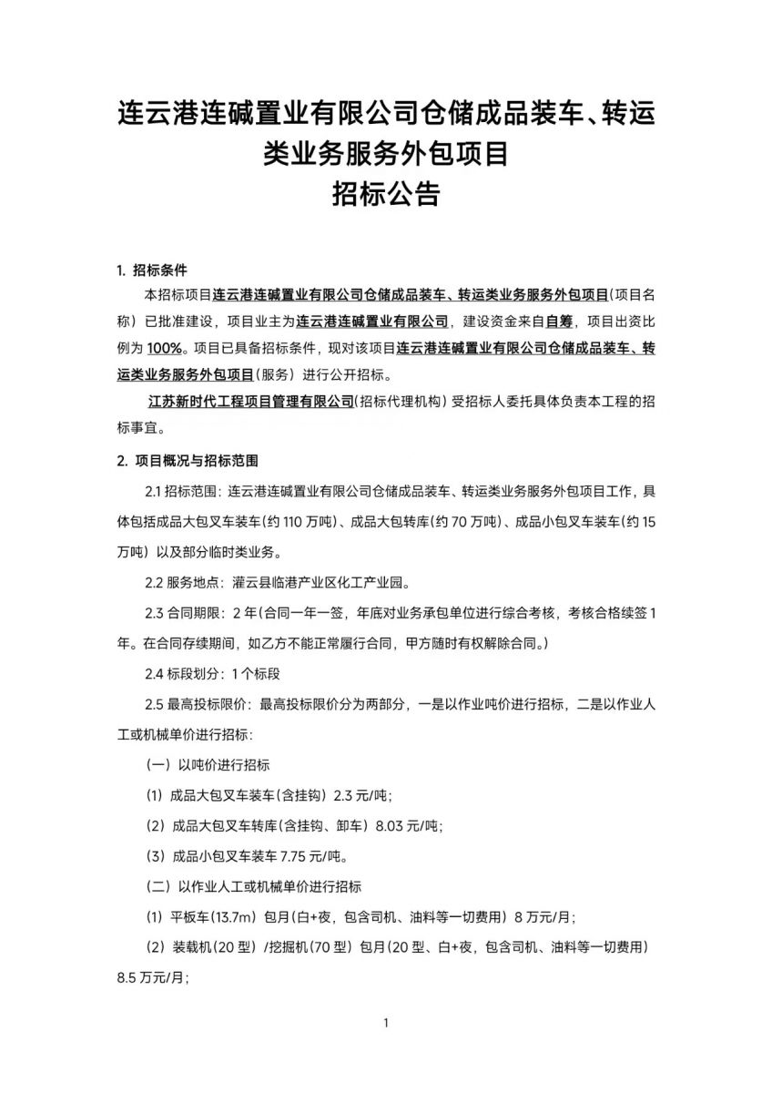 連云港連堿置業有限公司倉儲成品裝車、轉運類業務服務外包項目招標公告