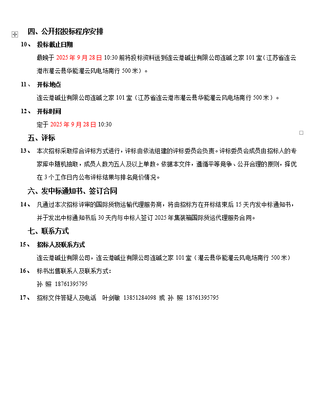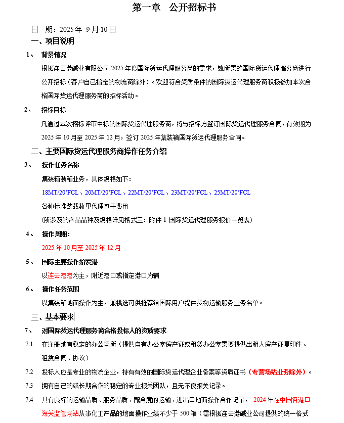 連云港堿業(yè)有限公司集裝箱國(guó)際貨運(yùn)代理服務(wù)商項(xiàng)目招標(biāo)公告