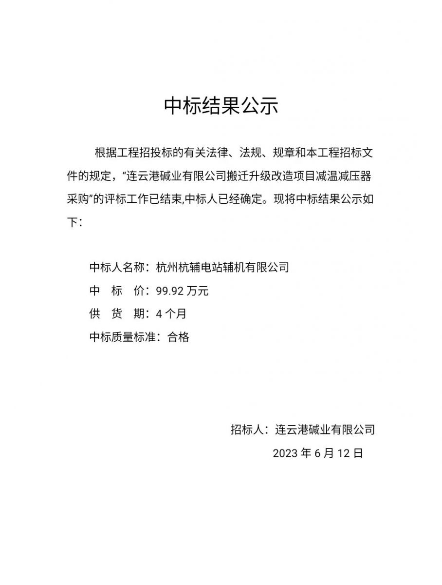 減溫減壓器中標結果公示