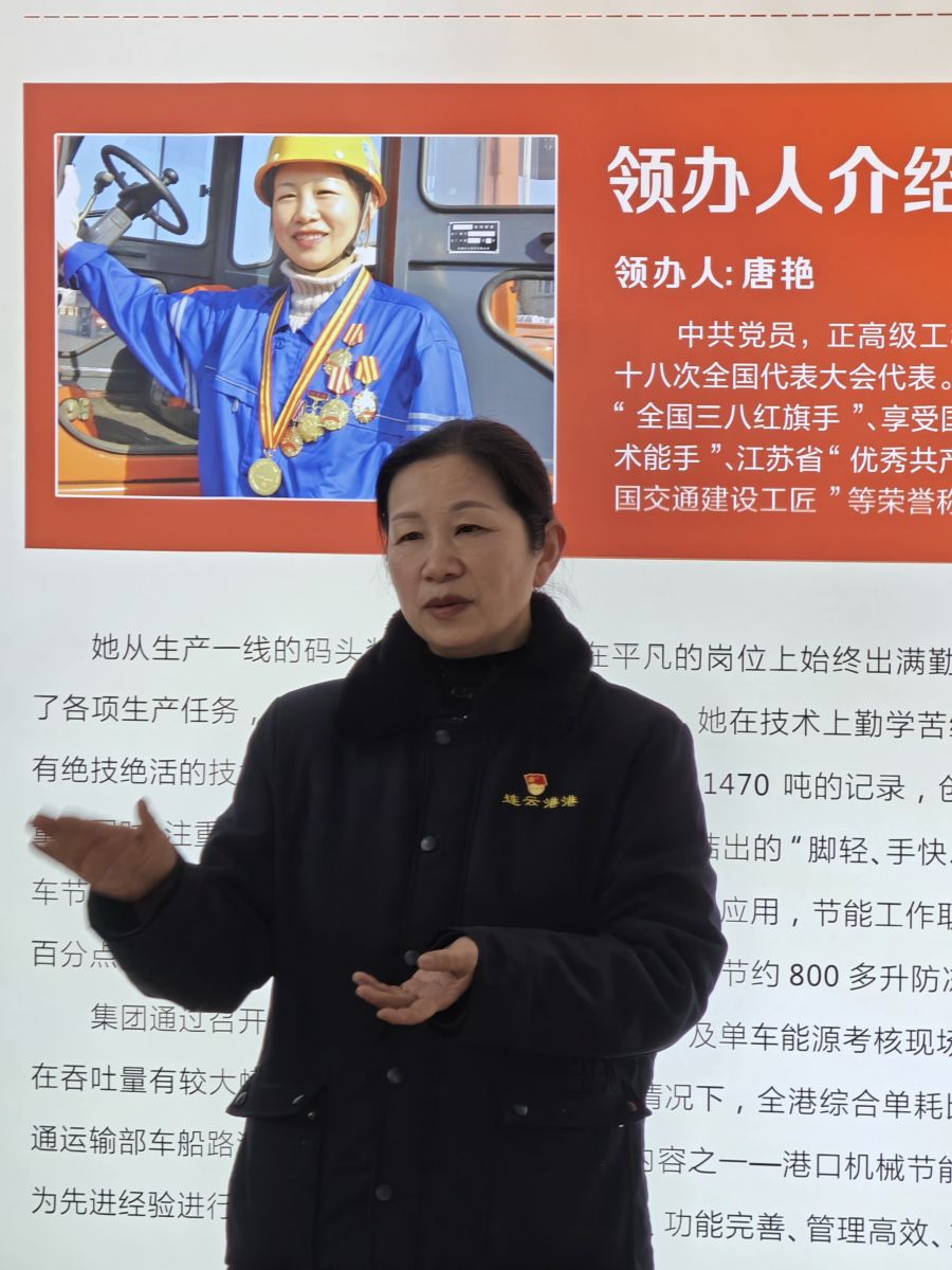 活動(dòng)第一站,大家乘車前往連云港港口集團(tuán)有限公司,參觀全國勞模唐艷工作室。現(xiàn)場,勞模唐艷為青年職工們介紹了工作室的情況,講述了自己珍貴的人生經(jīng)歷。唐艷鼓勵(lì)大家要樂于奉獻(xiàn)、敢于創(chuàng)新,在平凡的崗位上一步一個(gè)腳印,才能創(chuàng)造不平凡的業(yè)績。她的話就像是冬日里的一抹暖陽,為青年職工們的內(nèi)心點(diǎn)燃動(dòng)力的火焰。