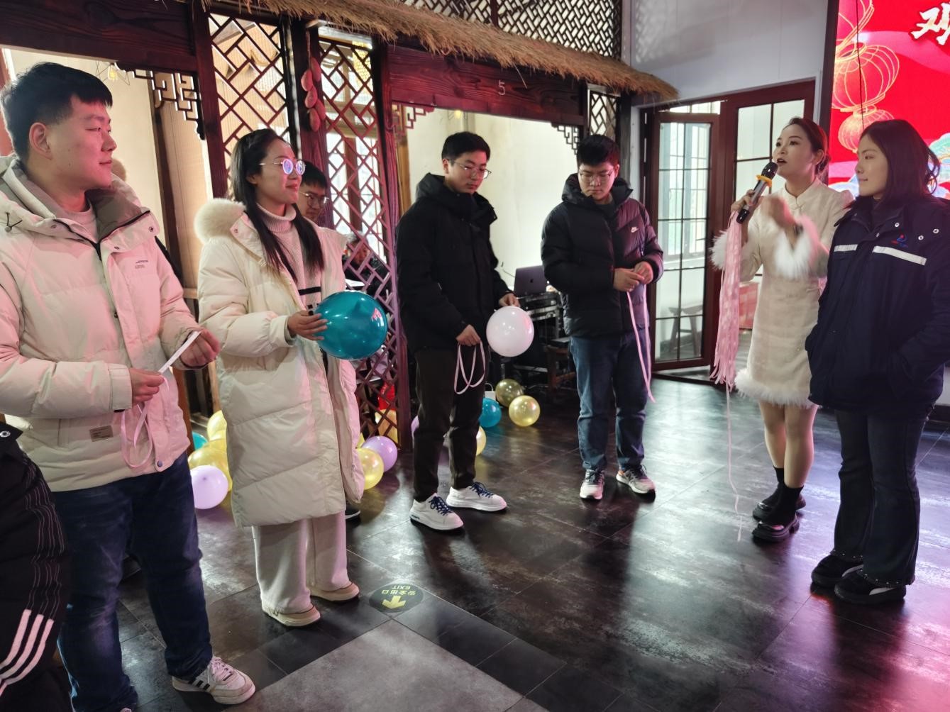 聯(lián)誼活動(dòng)正式開始!首先,主持人通過抽取撲克牌的趣味游戲,為青年男女們分組配對,幫助他們打破冰層,迅速熟絡(luò)。緊接著,不同組的青年男女們積極踴躍地參加踩氣球、運(yùn)氣球趣味活動(dòng),他們彼此間的距離也愈發(fā)拉進(jìn)。本次活動(dòng)中,獲得游戲勝利的隊(duì)伍可以獲得紅包獎(jiǎng)勵(lì),而失敗的隊(duì)伍則需要接受懲罰,添加在場異性青年或隊(duì)友的微信。