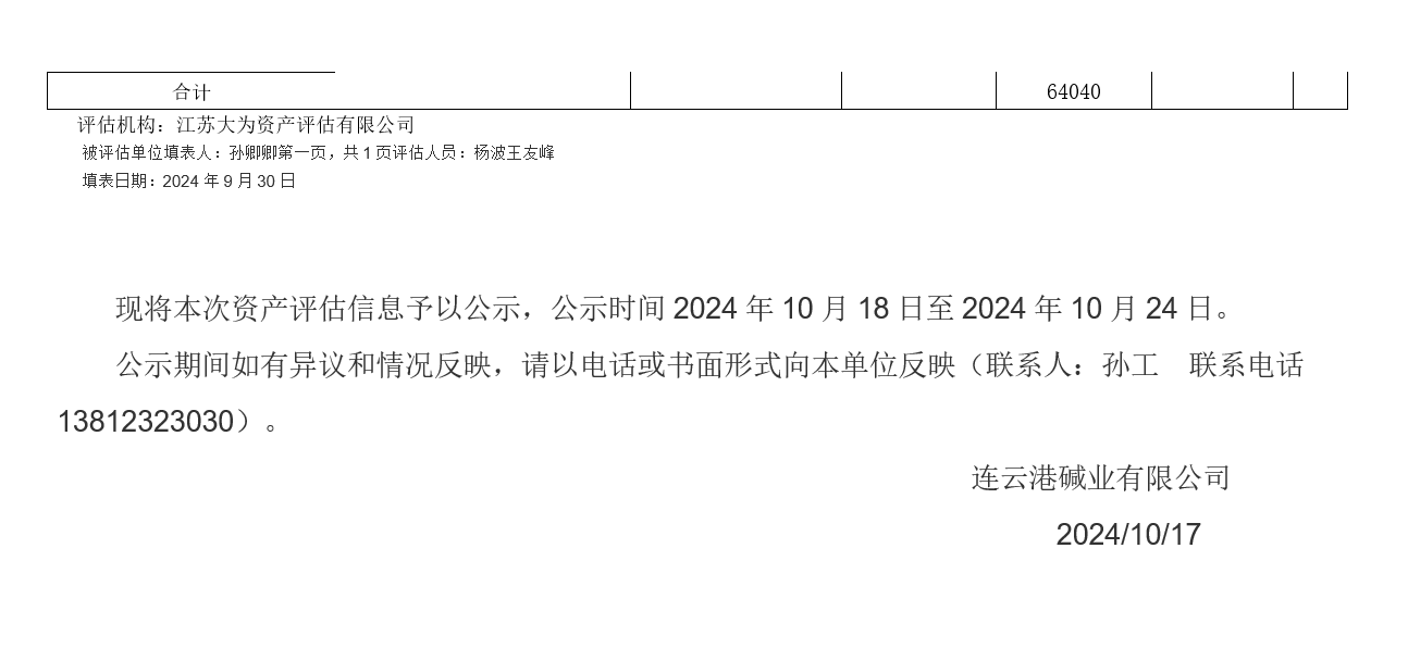 連云港堿業(yè)有限公司老廠區(qū)食堂等廢舊物資資產(chǎn)評(píng)估公示