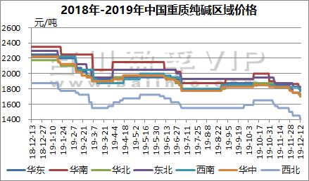 百川資訊及純堿公平貿易工作站:(2019.12.6-12.12)重質純堿送到價格走勢圖(注:西北出廠)